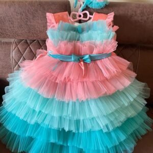 Red Organza and blue Frock for Kids with Hair band : NZD-015