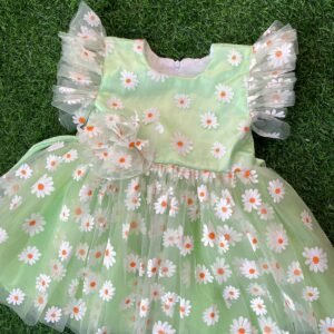 Green colour Party wear frock collection |Birthday wear frock : NZD-001092