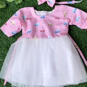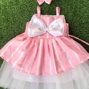 Pink & white colour Party wear frock collection |Birthday wear frock : NZD-001096