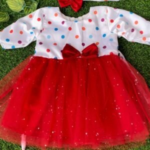 Red & white colour Party wear frock collection |Birthday wear frock : NZD-0010100