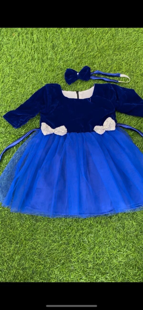 Blue colour velvet Party wear frock collection |Birthday wear frock : NZD-001078