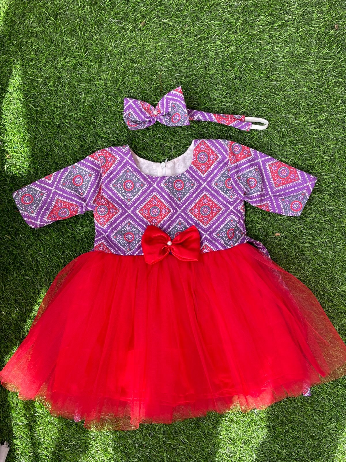 - Designer Birthday Frock with comfortable Satin in upper part and Net with satin and cotton lining in bottom.