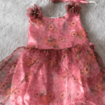 - Green colour floral organza frock for Girls