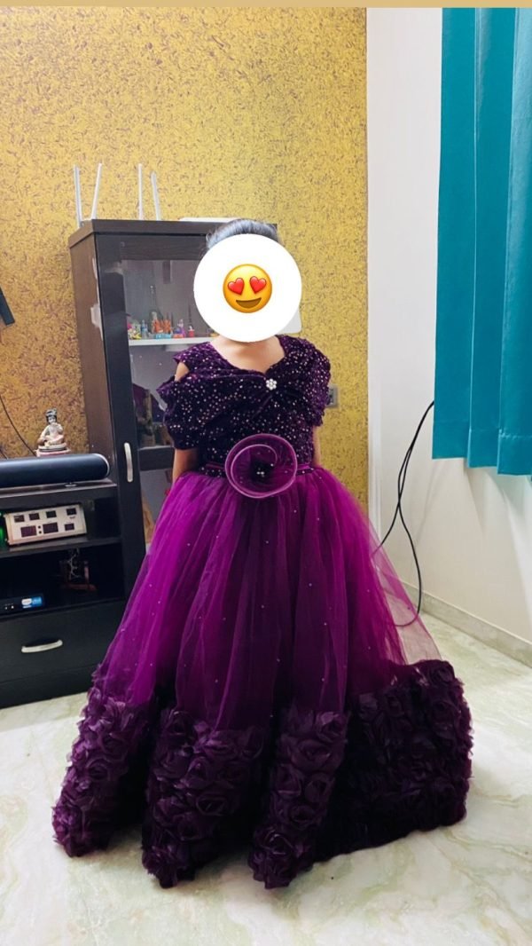 Wine color Flower Dress with velvet sequence