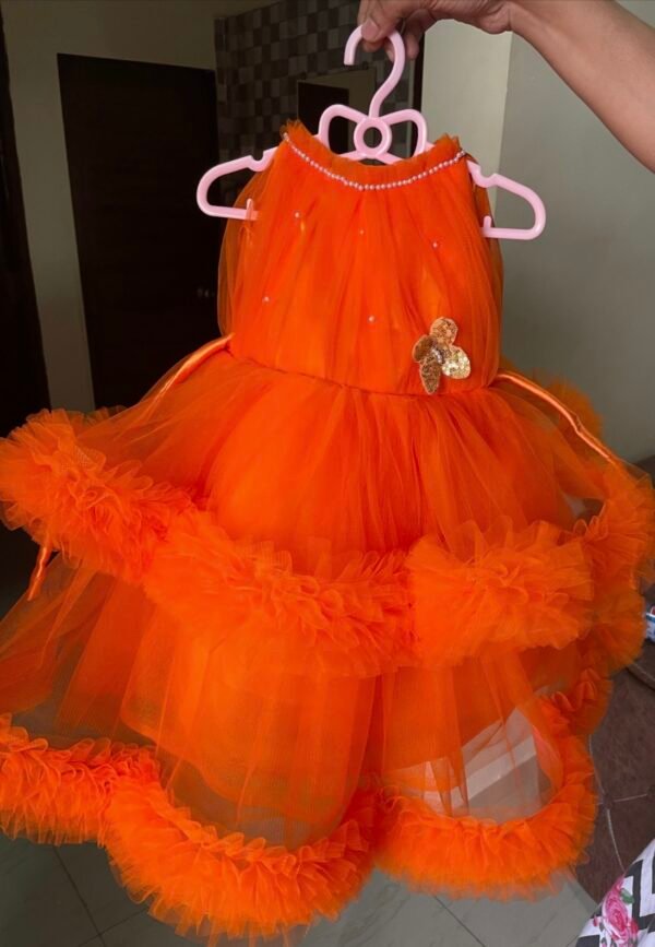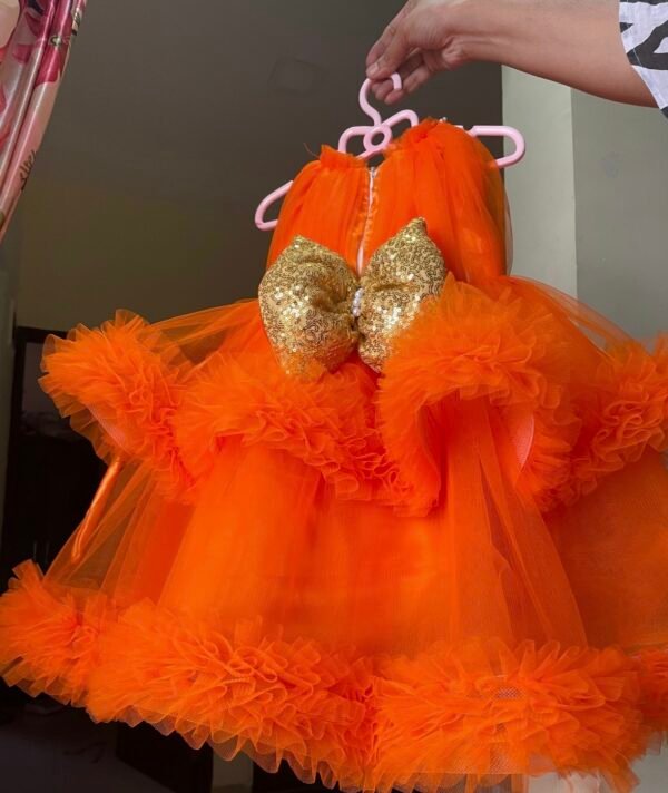 Orange color Party wear frock collection |Birthday wear frock : NZD-001038