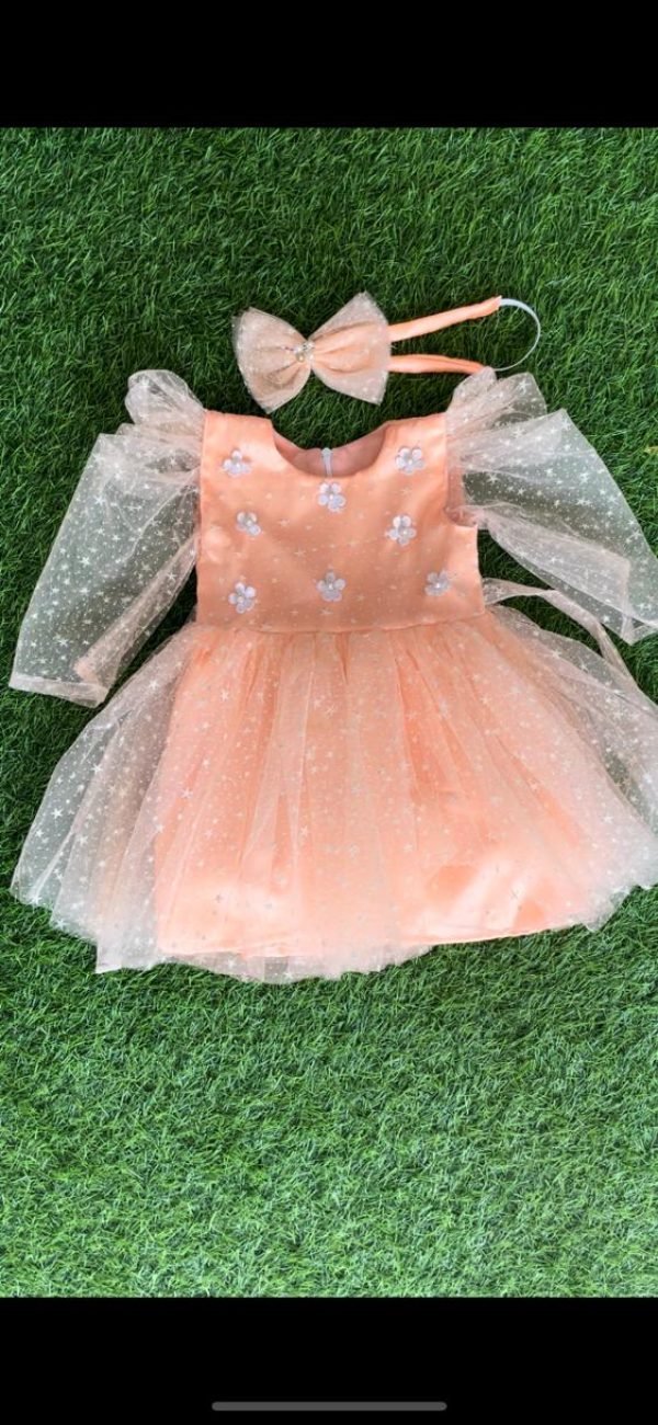 Be the first to review “Peach colour Party wear star design frock collection |Birthday wear frock : NZD-001031”