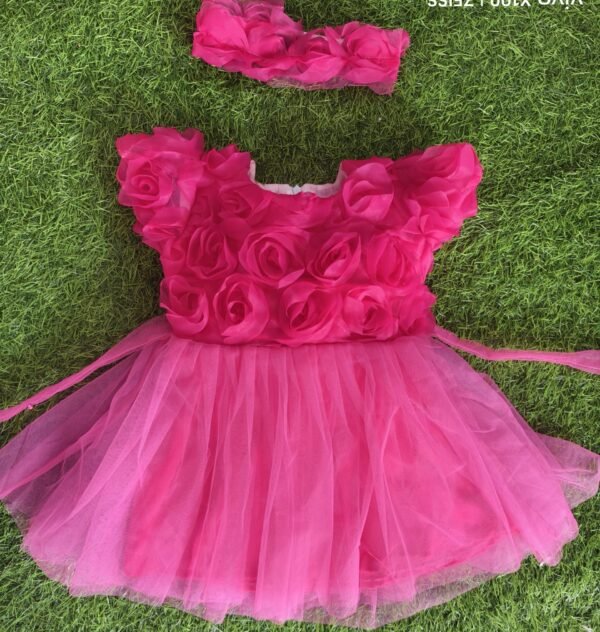 - Dark pink flower frock with flowers, Party wear Frock for Girls