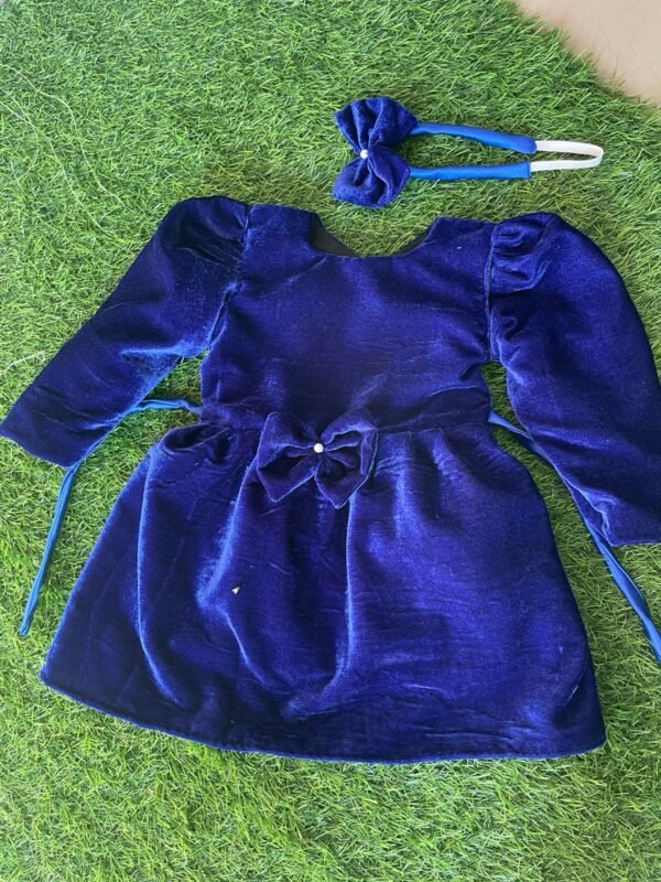 Blue colour Velvet Frock with matching hair band for Girls