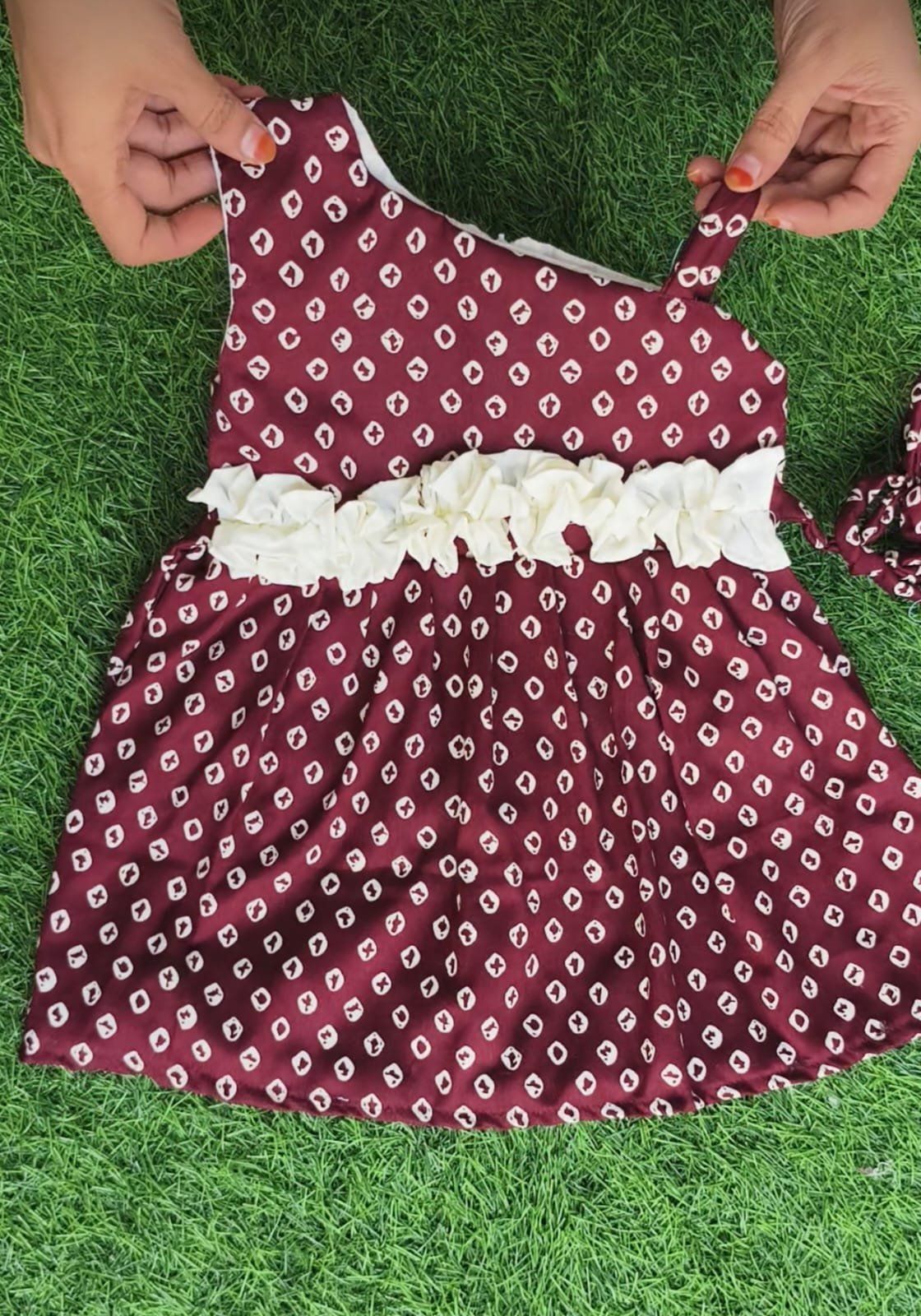 Baby girl frocks with matching hair band.
