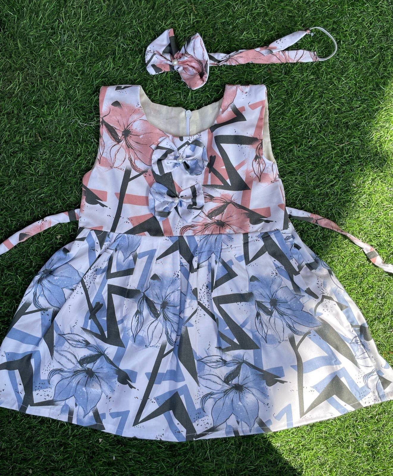 Baby girl frocks with matching hair band.