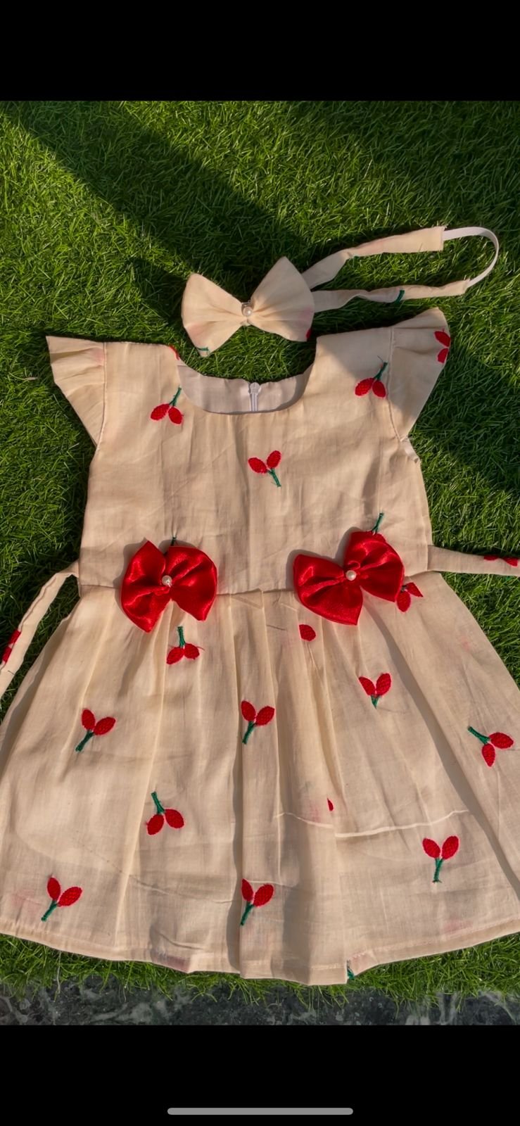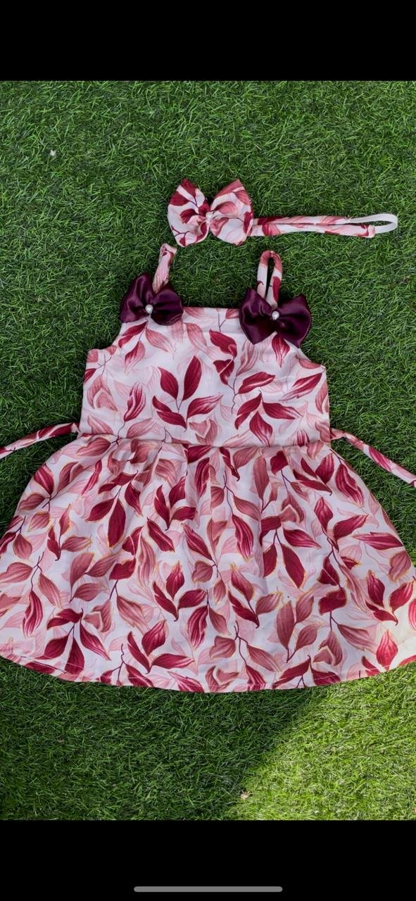 Baby girl frocks with matching hair band.