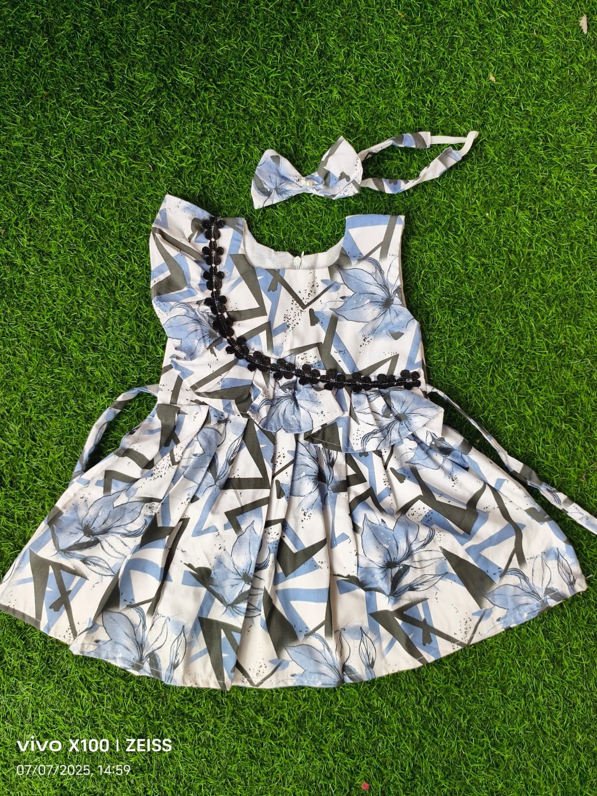 Baby girl frocks with matching hair band.