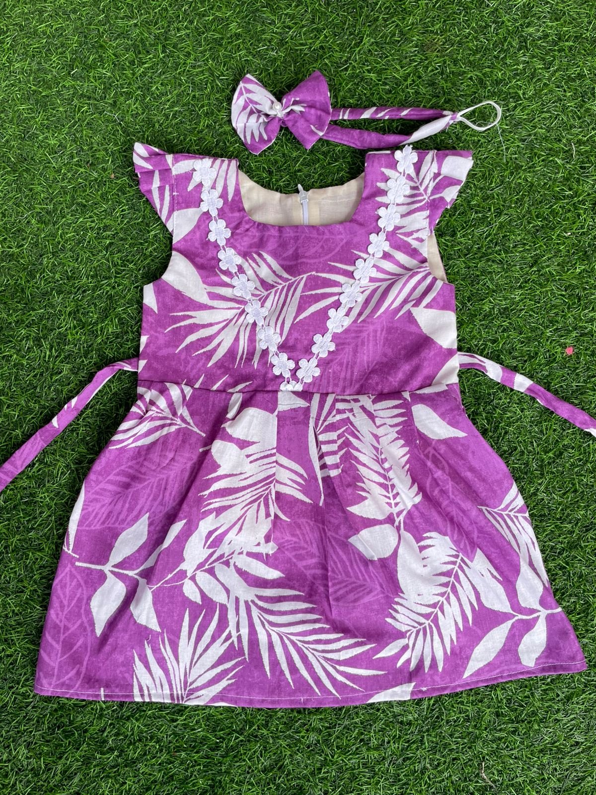 Baby girl frocks with matching hair band.