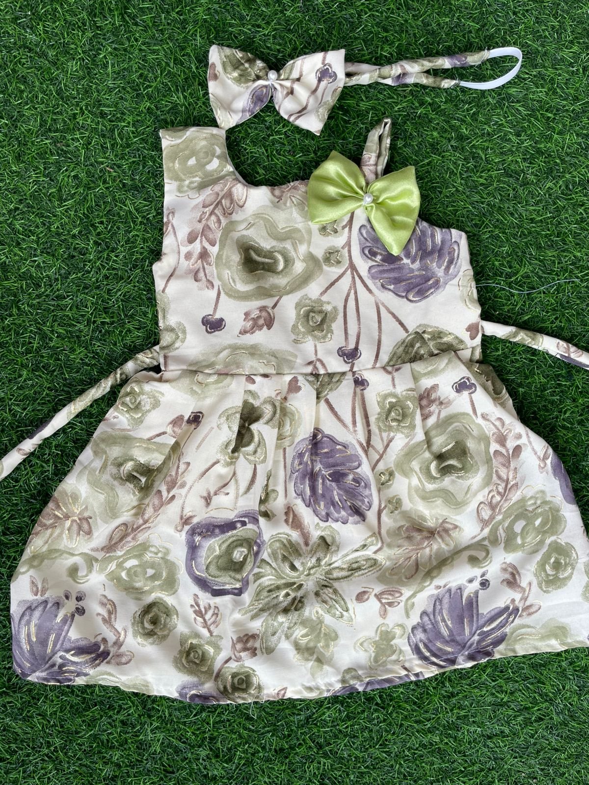 Baby girl frocks with matching hair band.