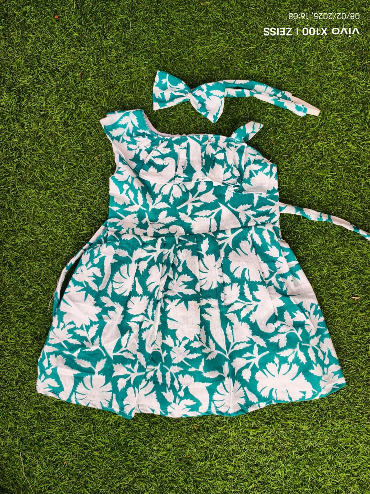 Baby girl frocks with matching hair band.