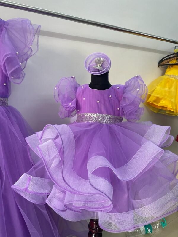 Purple color Flower Dress with velvet sequence