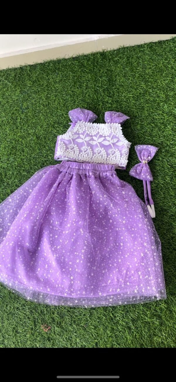 - Purple color Party wear star design top & skirt for Girls