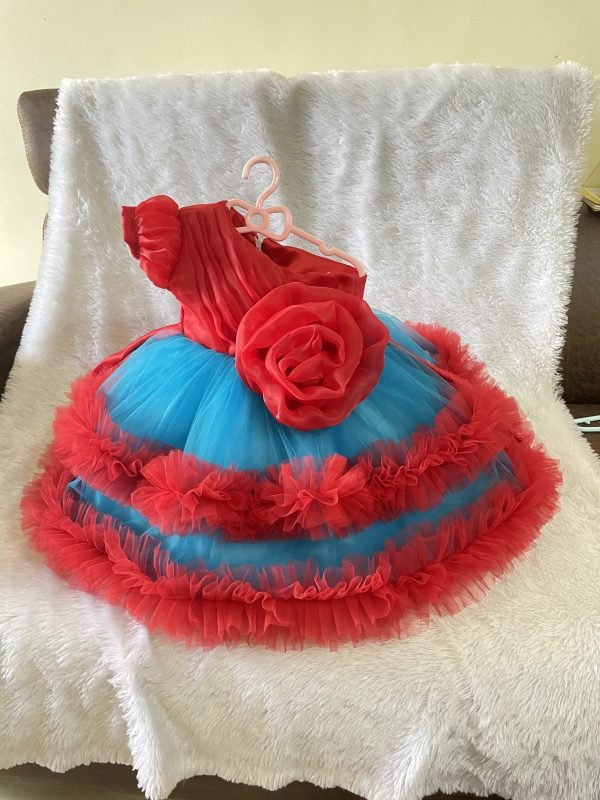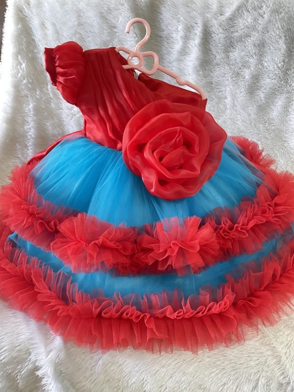 Red flower one shoulder with blue combination and 2 layers frills