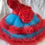 Organza Red and blue frock with free matching Hair band